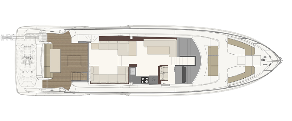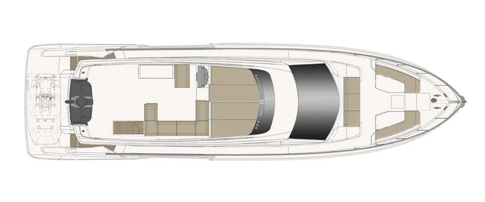 The flybridge provides a welcoming, private space to unwind or entertain, with a privileged panoramic view.
