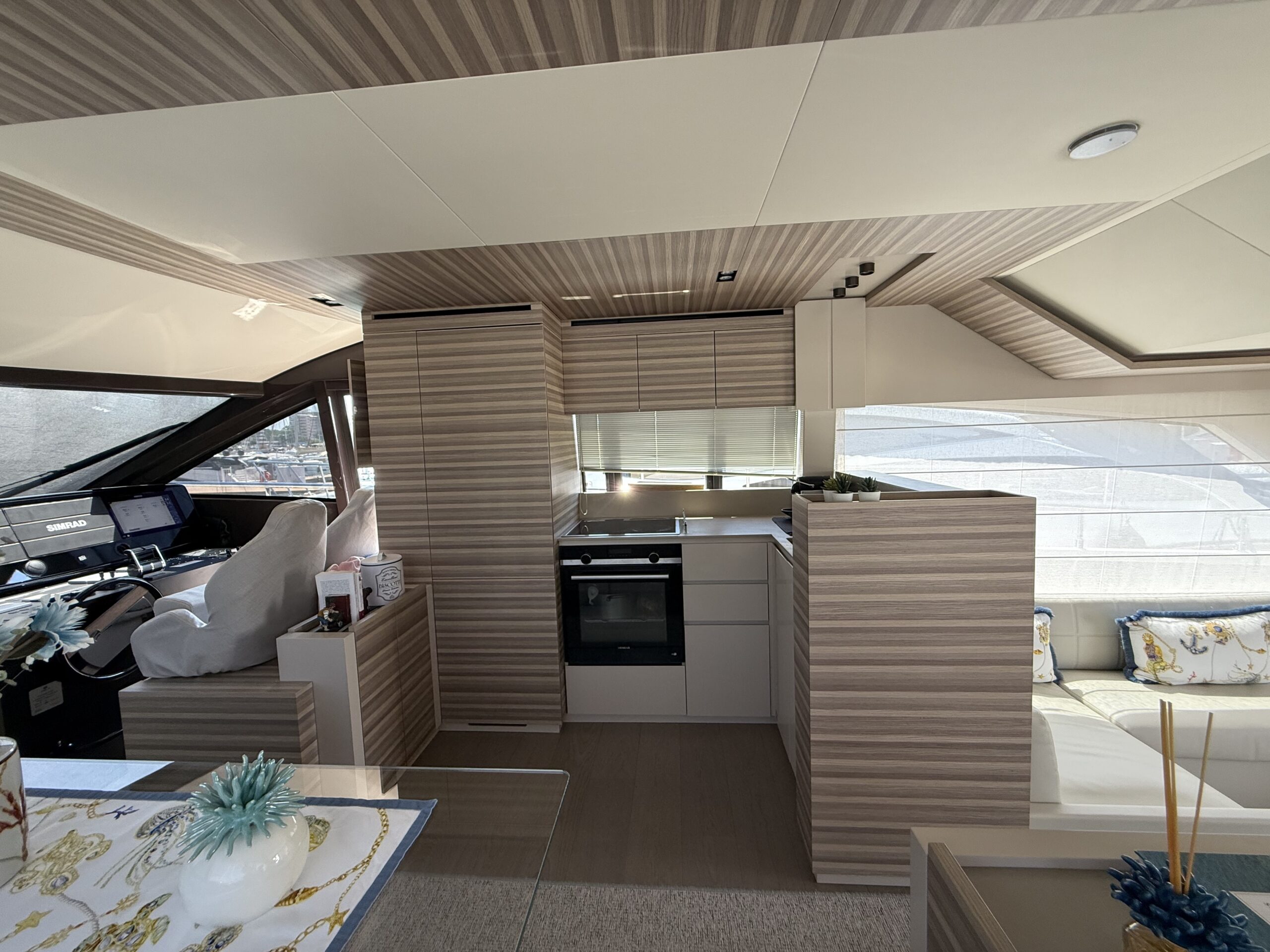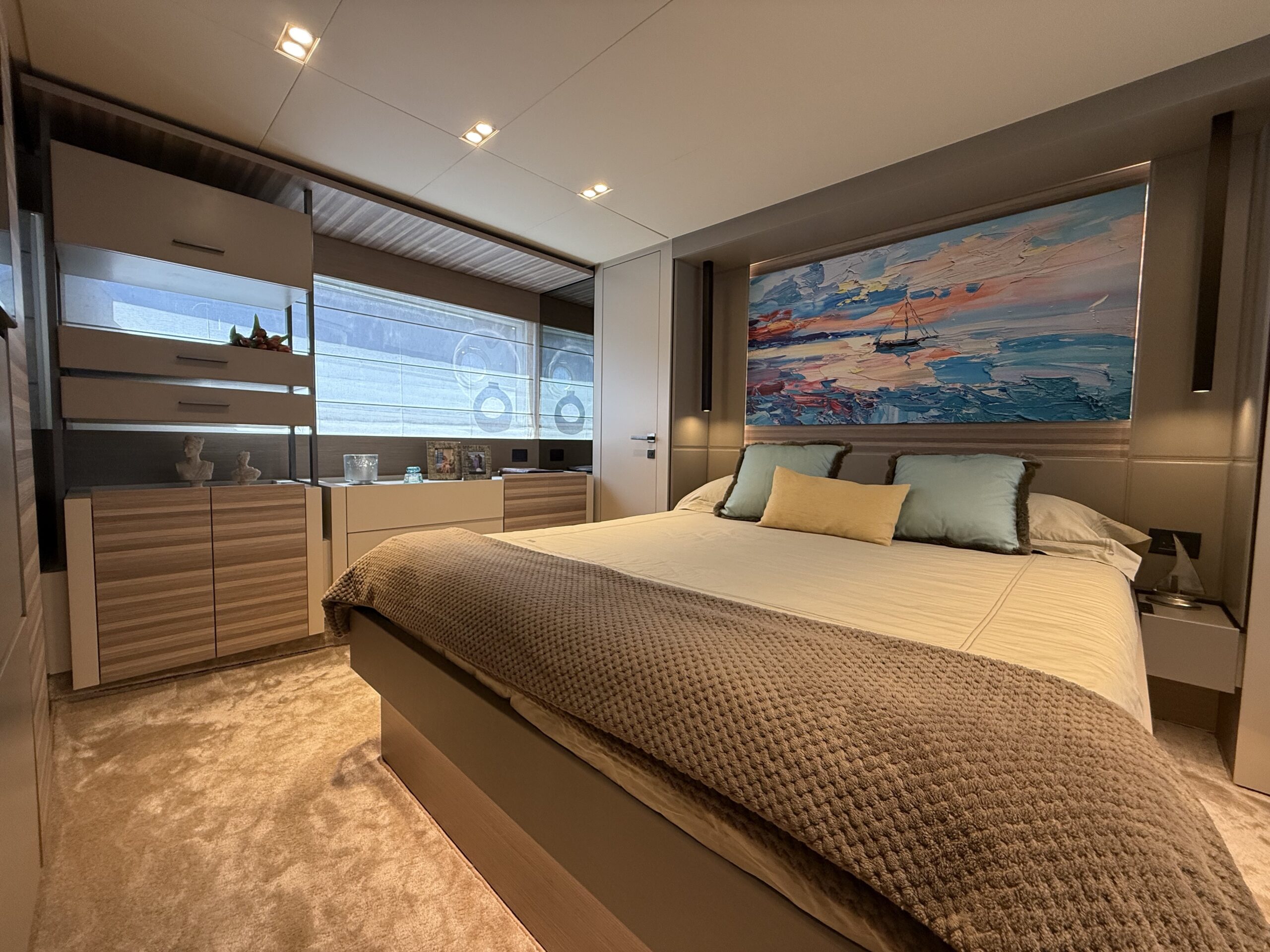 On board the Ferretti Yachts 670, every detail tells a story of elegance, technology, and passion for the sea. Measuring 20.24 meters in length, this stunning flybridge represents the perfect balance between the refined style of Italian design and the engineering excellence of the Ferretti Yachts shipyard.