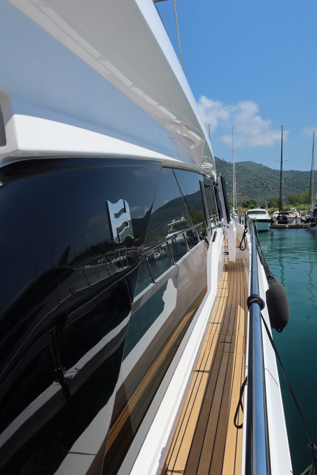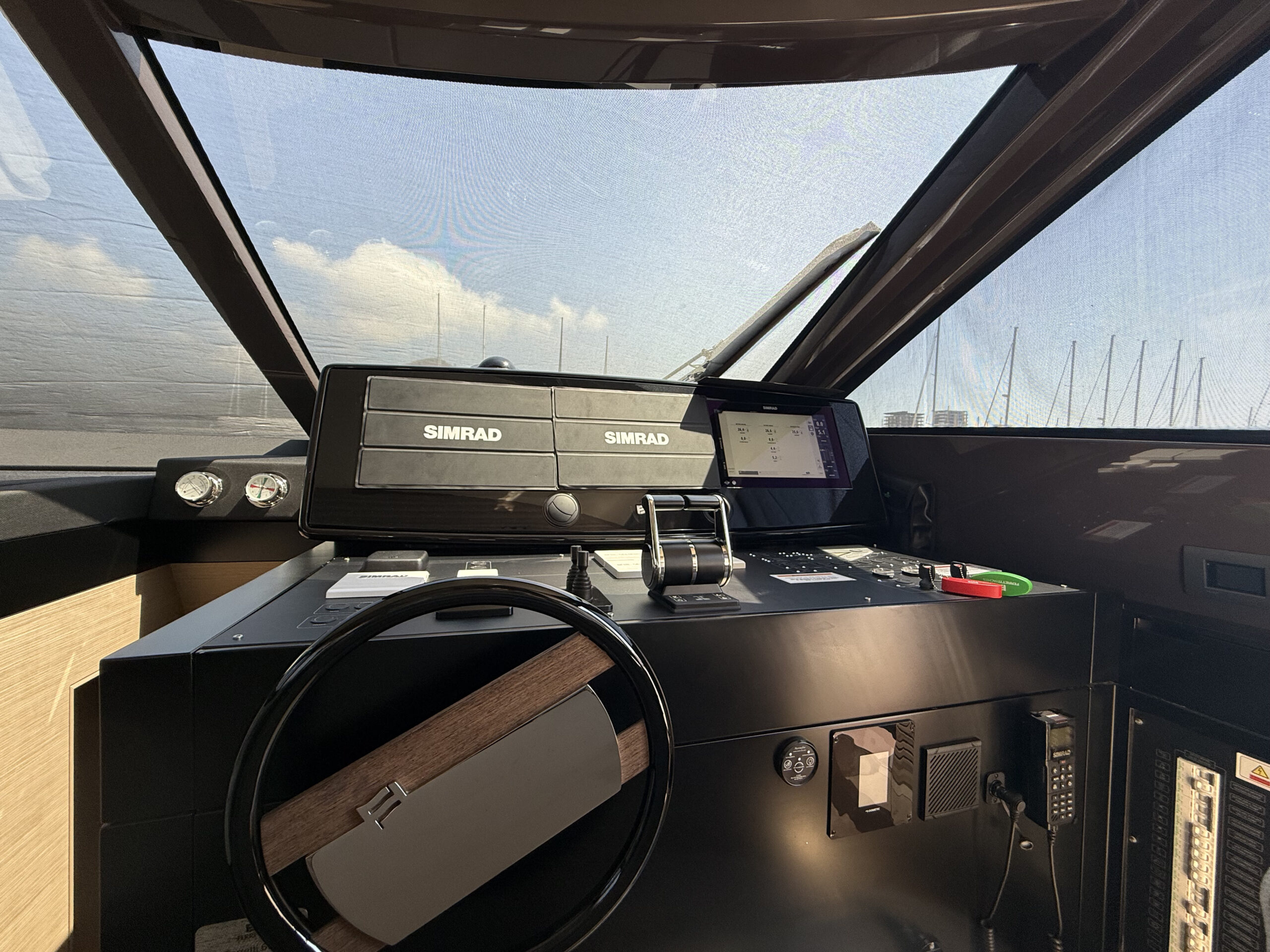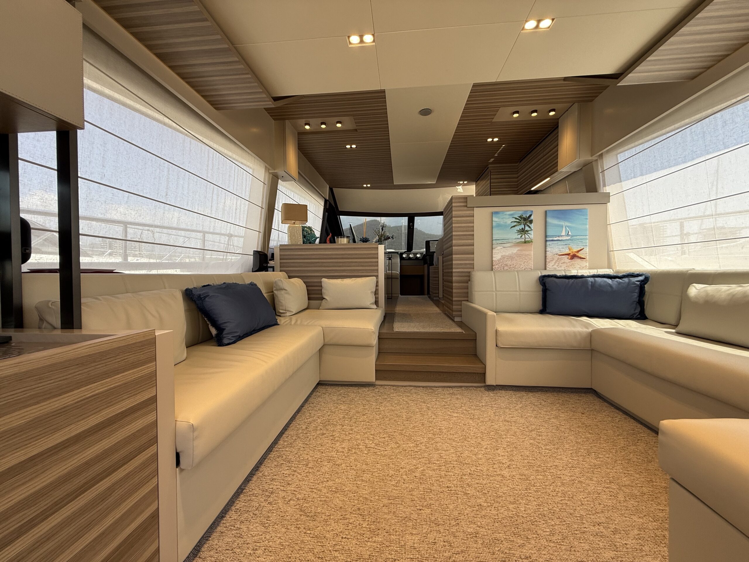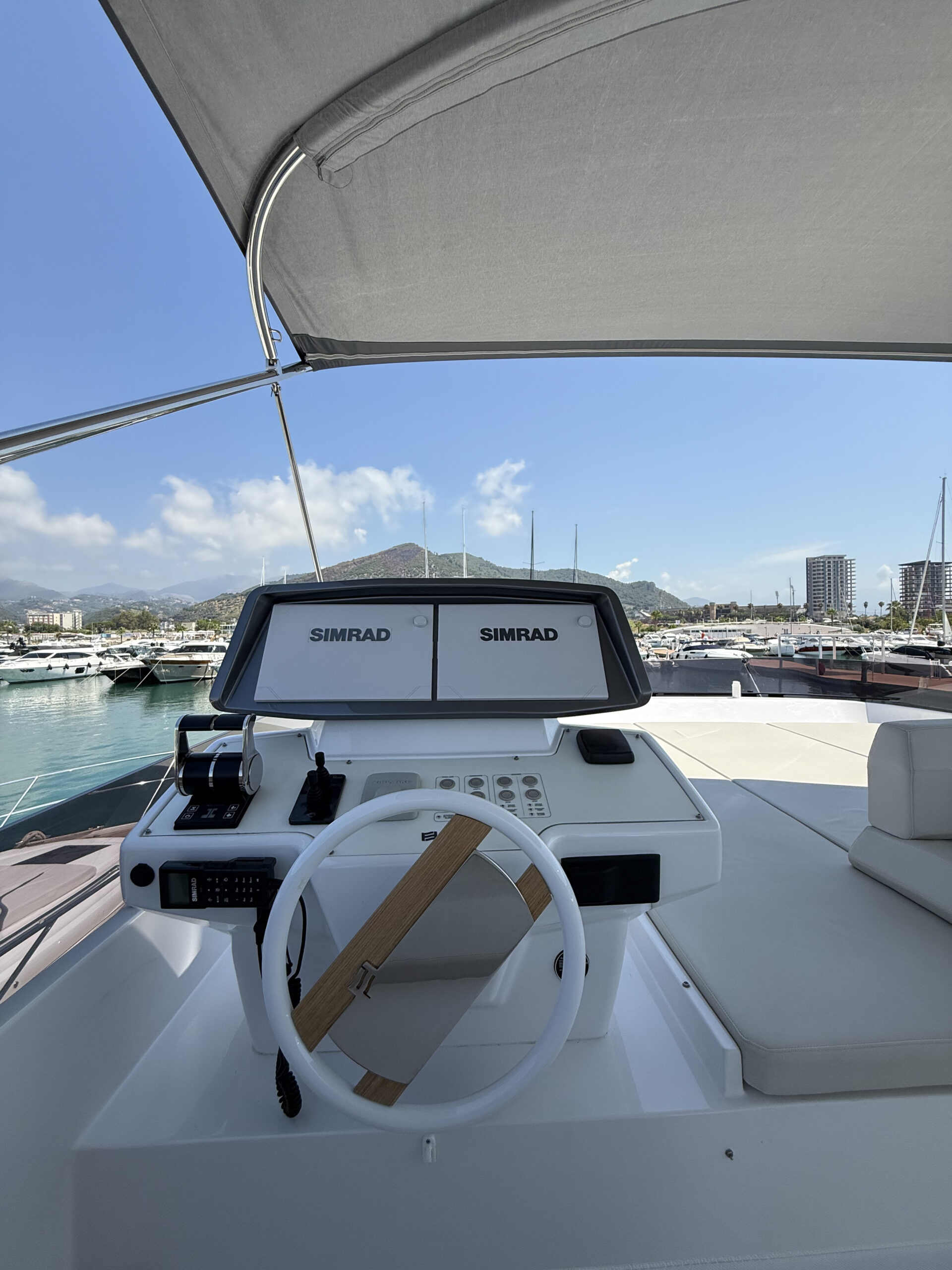 The flybridge provides a welcoming, private space to unwind or entertain, with a privileged panoramic view.