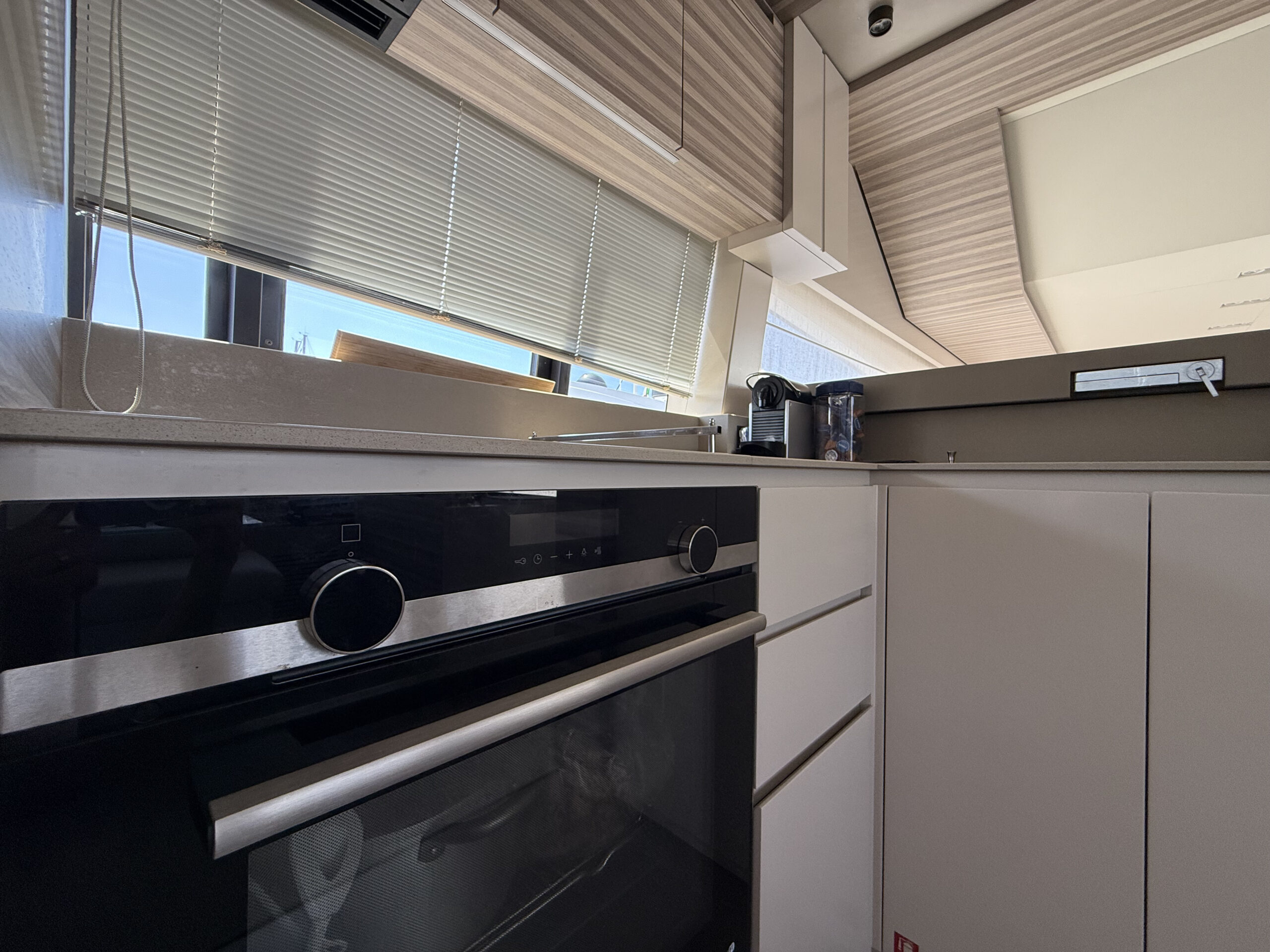 The dining area and open-concept galley are perfectly integrated, designed to combine conviviality with practicality.