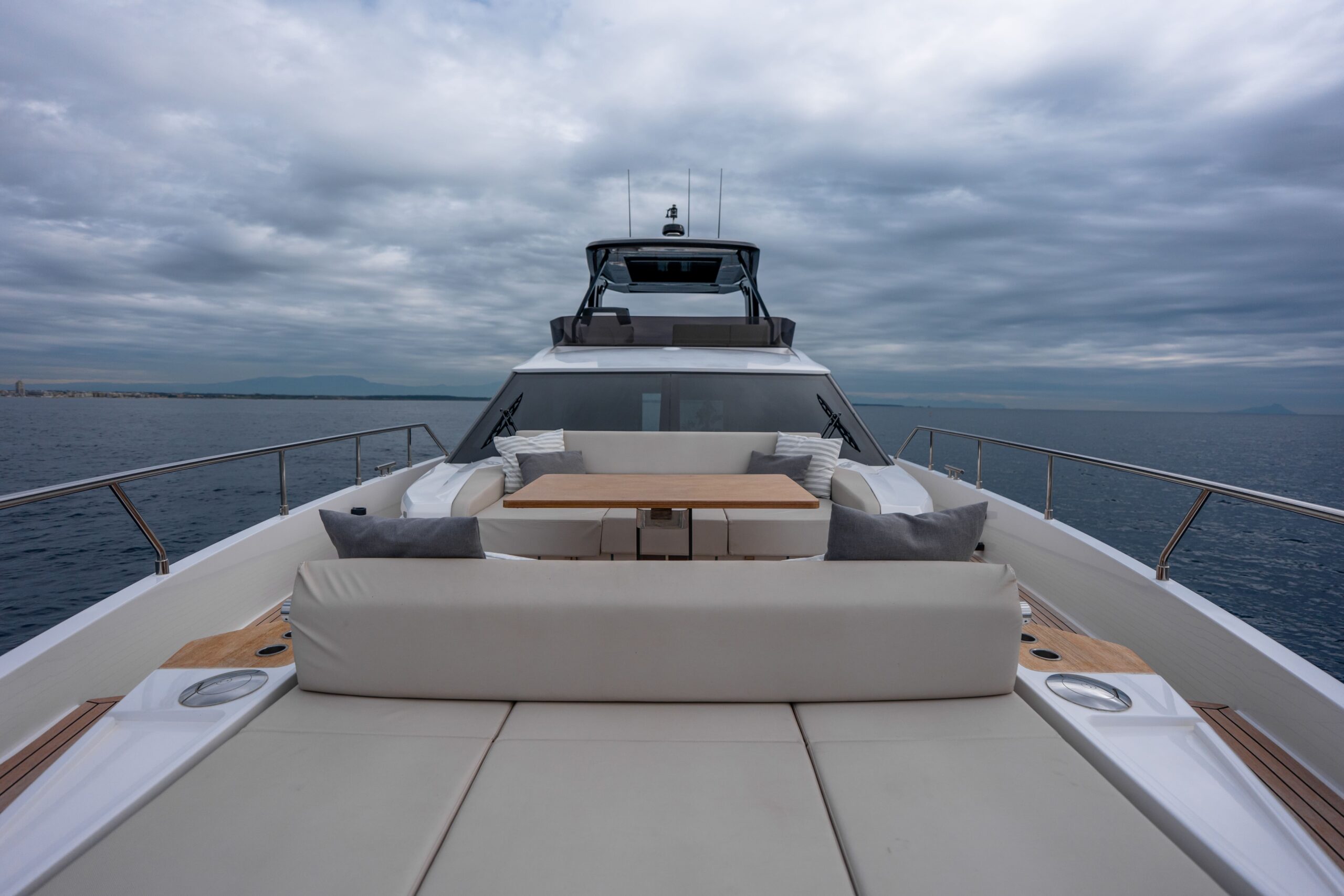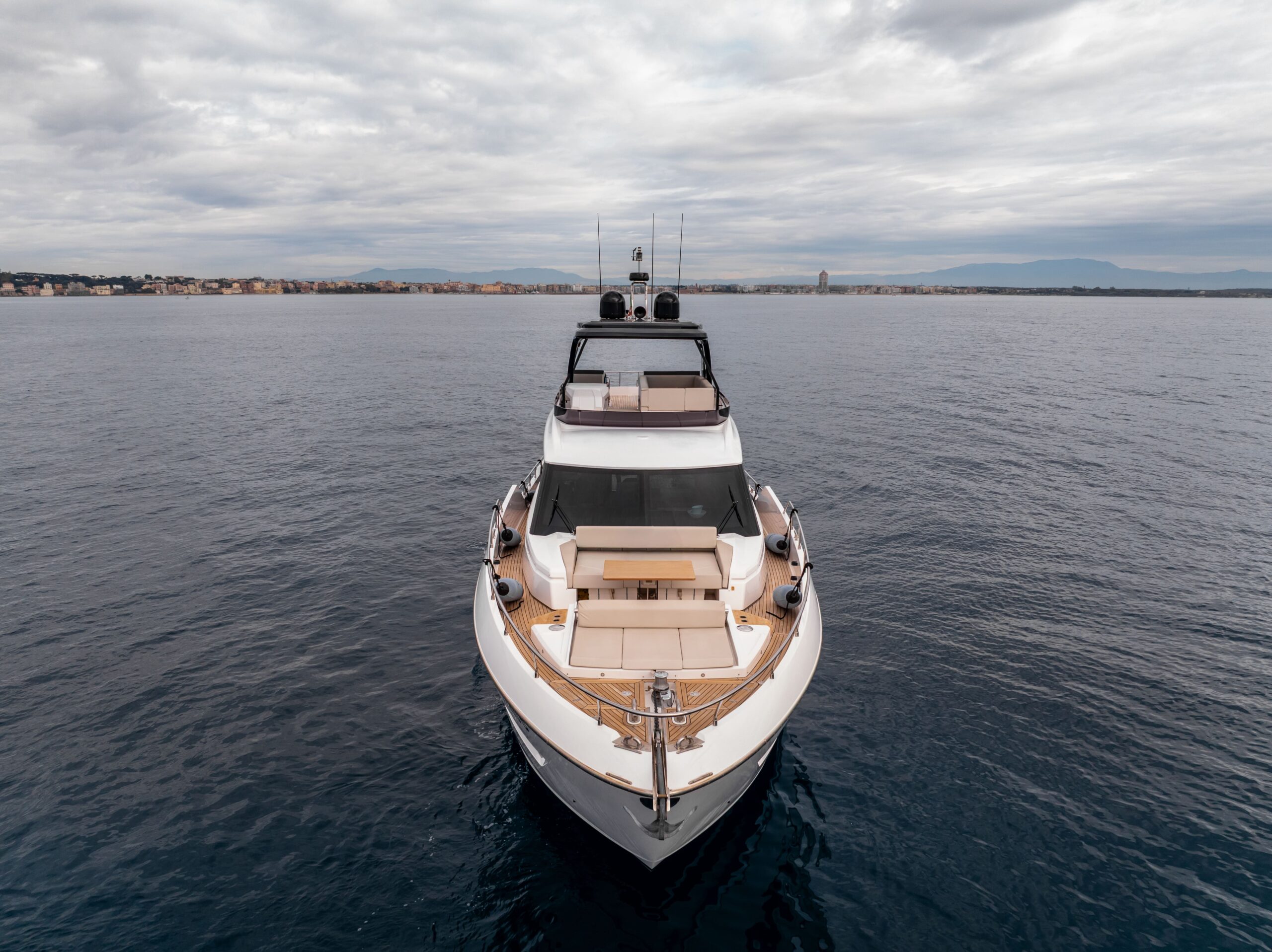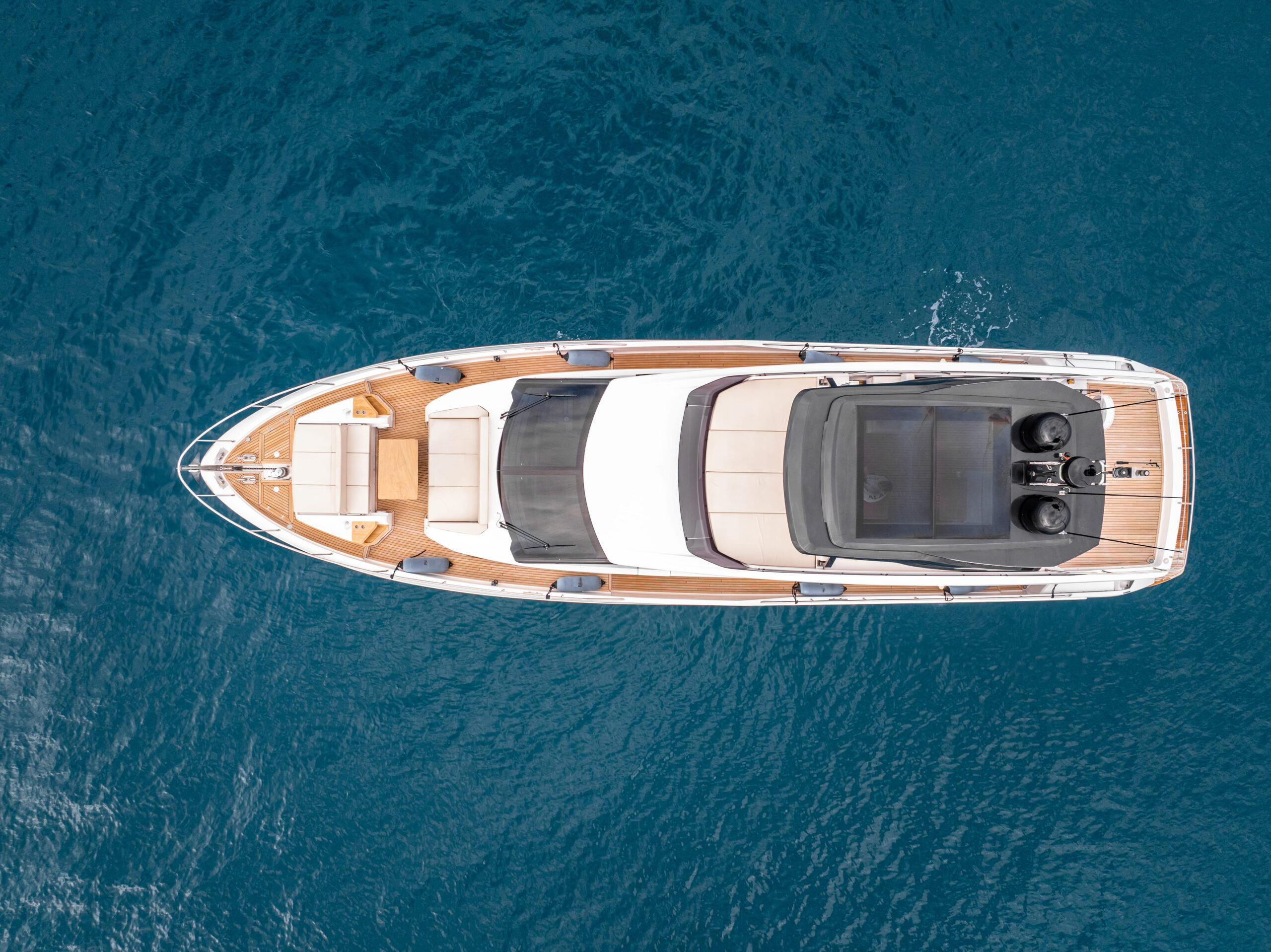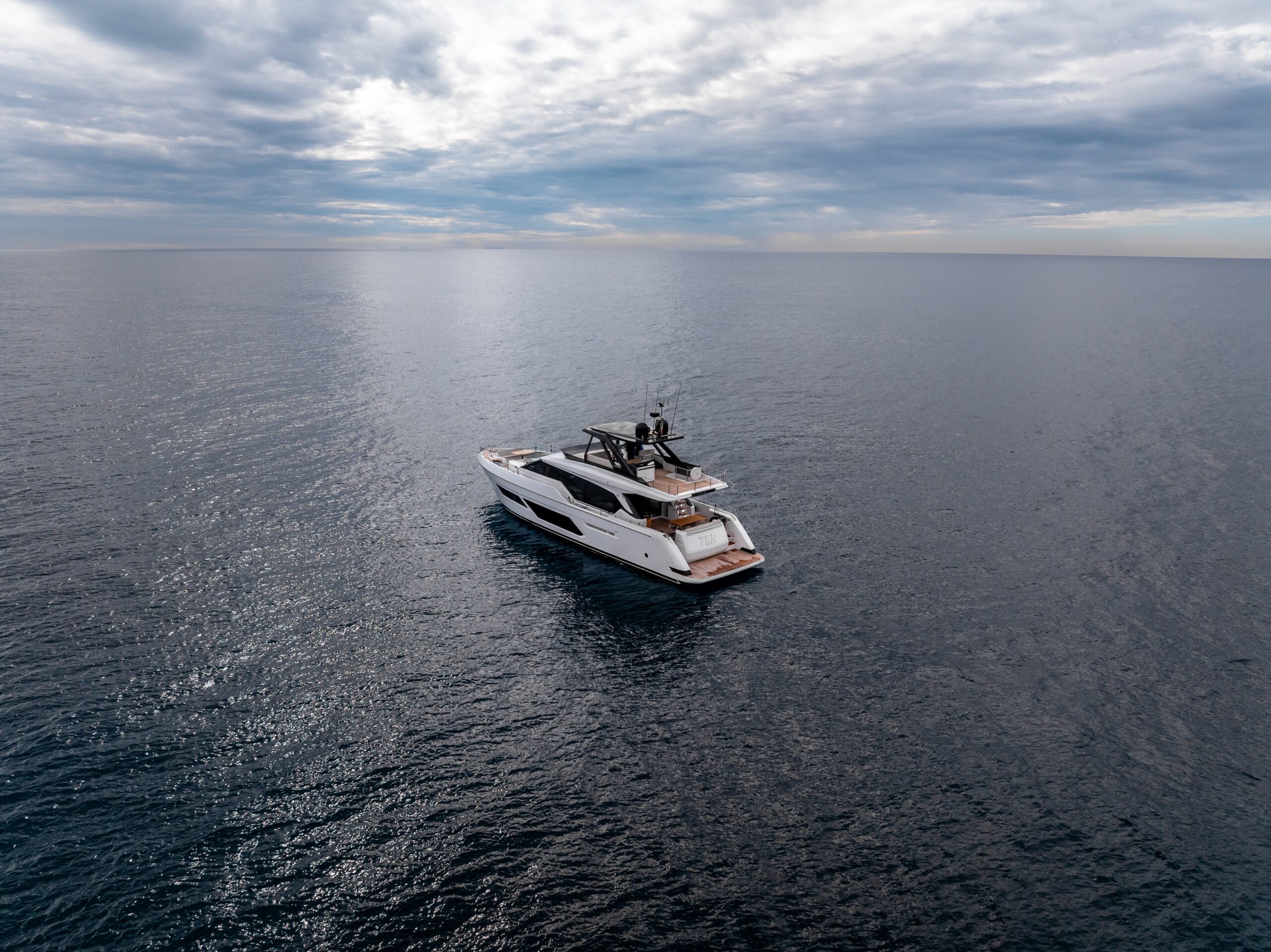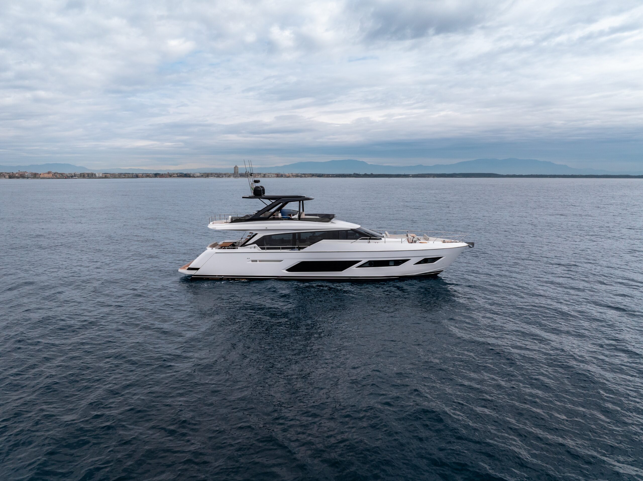 With an overall length of 22.30 metres, the Ferretti Yachts 720 stands out in its class for its sleek hull and dynamic profile, a clear expression of the shipyard’s latest design evolution.