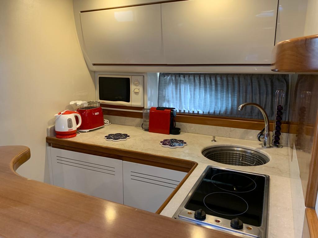 La dinette è trasformabile in due posti letto aggiuntivi e la cucina, completa e ben attrezzata, è dotata di piano cottura in vetroceramica, forno a microonde (sostituito nel 2022), frigorifero e ampio piano d’appoggio. Nel pozzetto è inoltre presente una terza doccia con miscelatore.