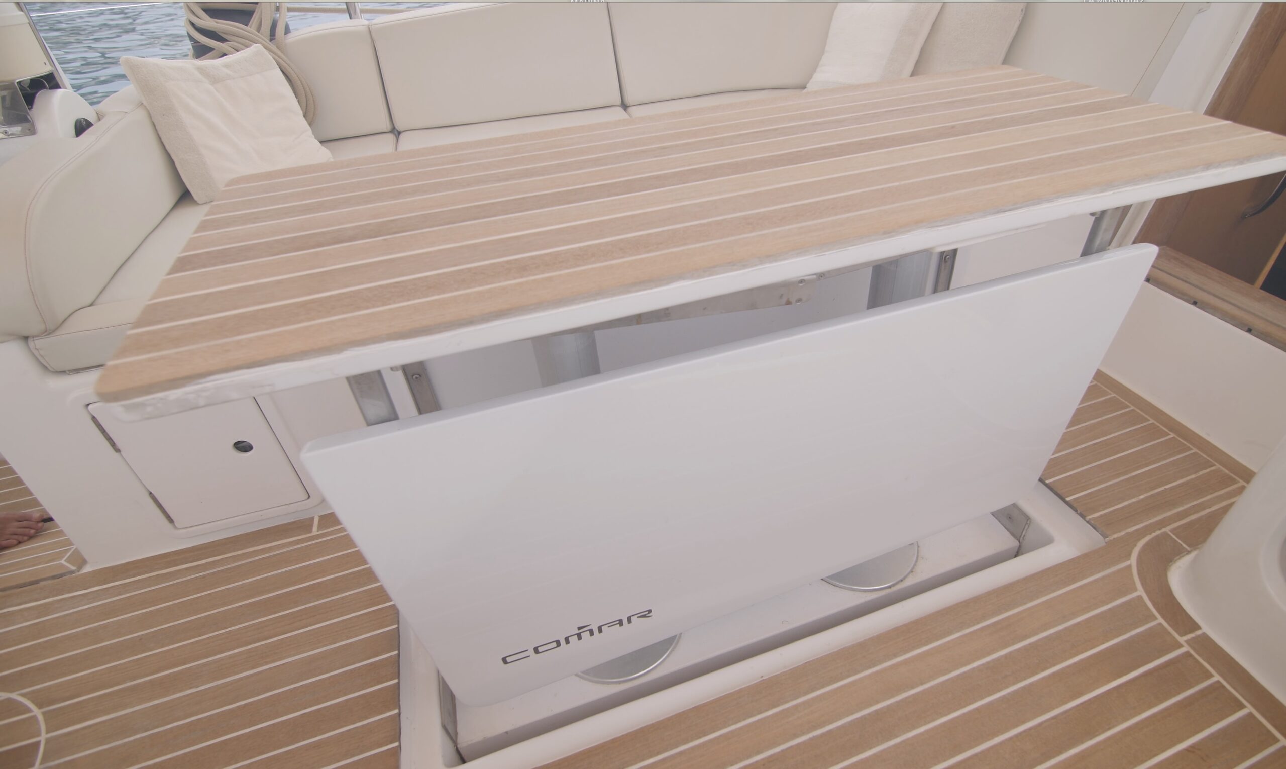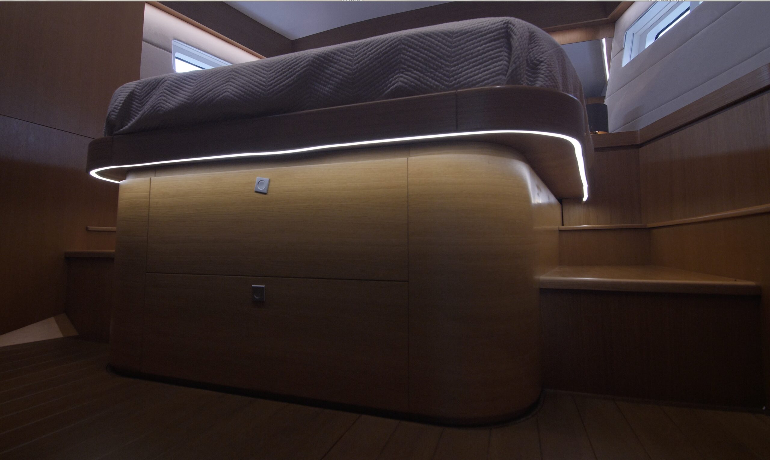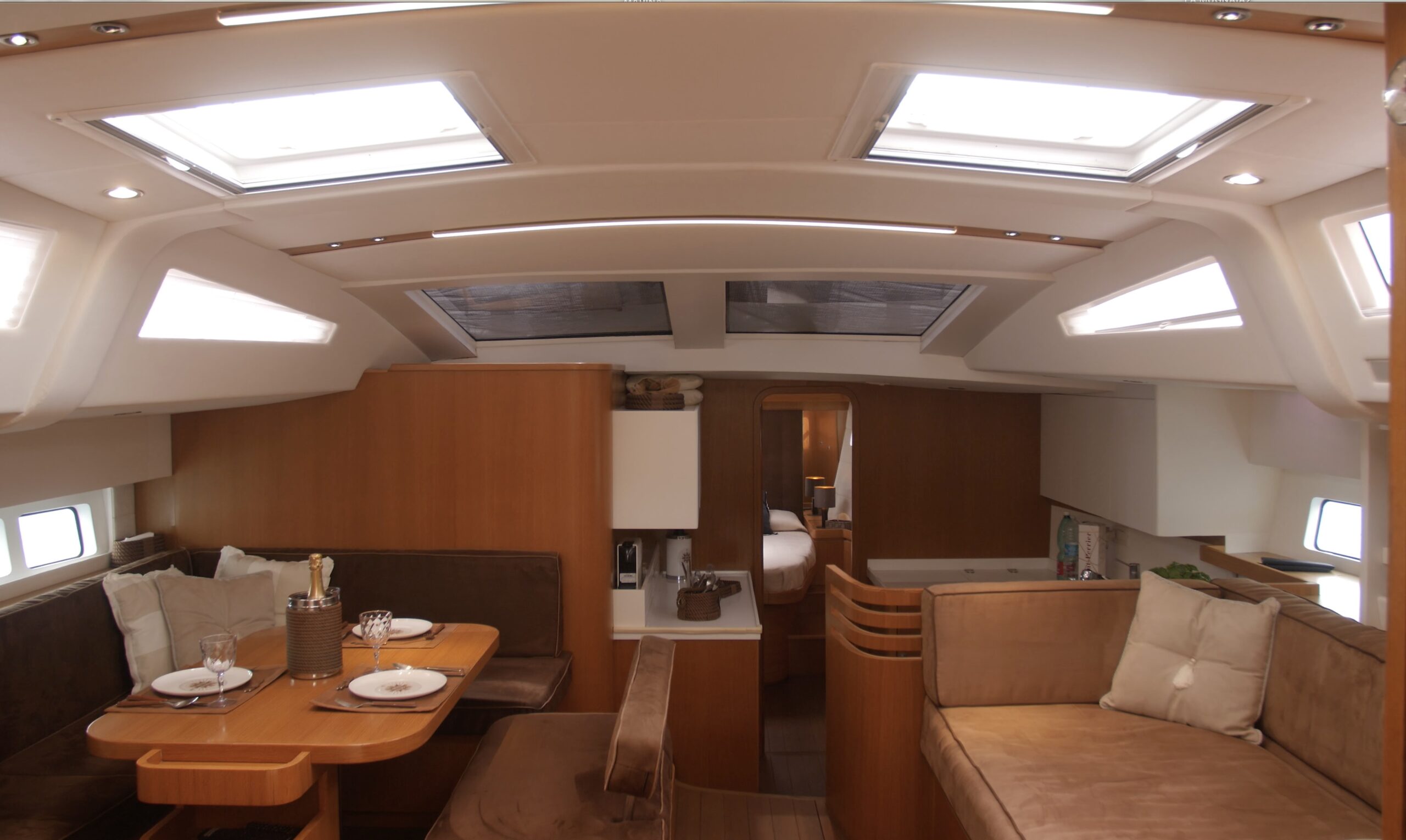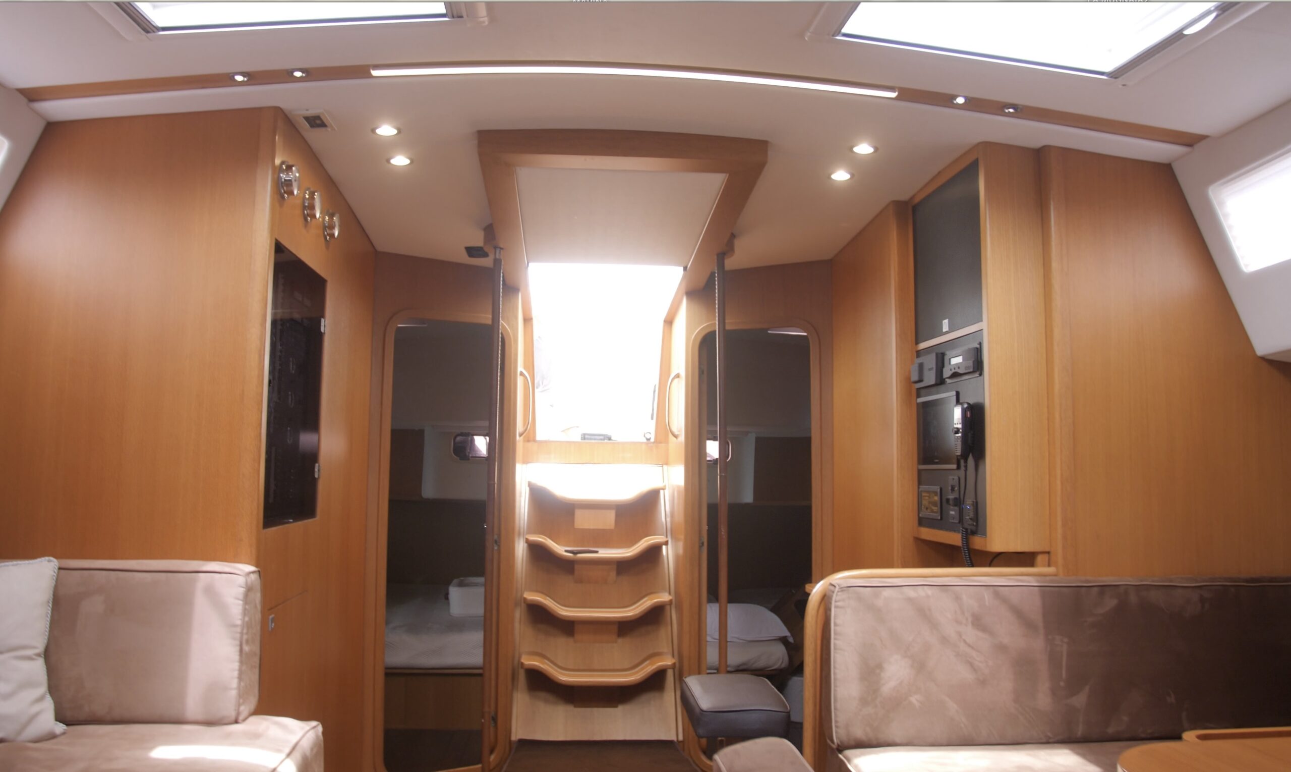 Gli interni, completamente ridisegnati su progetto di Marco Casali, offrono ambienti raffinati e accoglienti, con nuove tappezzerie, cielini, un’inedita disposizione della dinette e una cucina totalmente rinnovata. L’illuminazione è stata riprogettata per creare atmosfere calde e moderne, mentre sei nuovi oblò a murata garantiscono una luce naturale ancora più avvolgente.