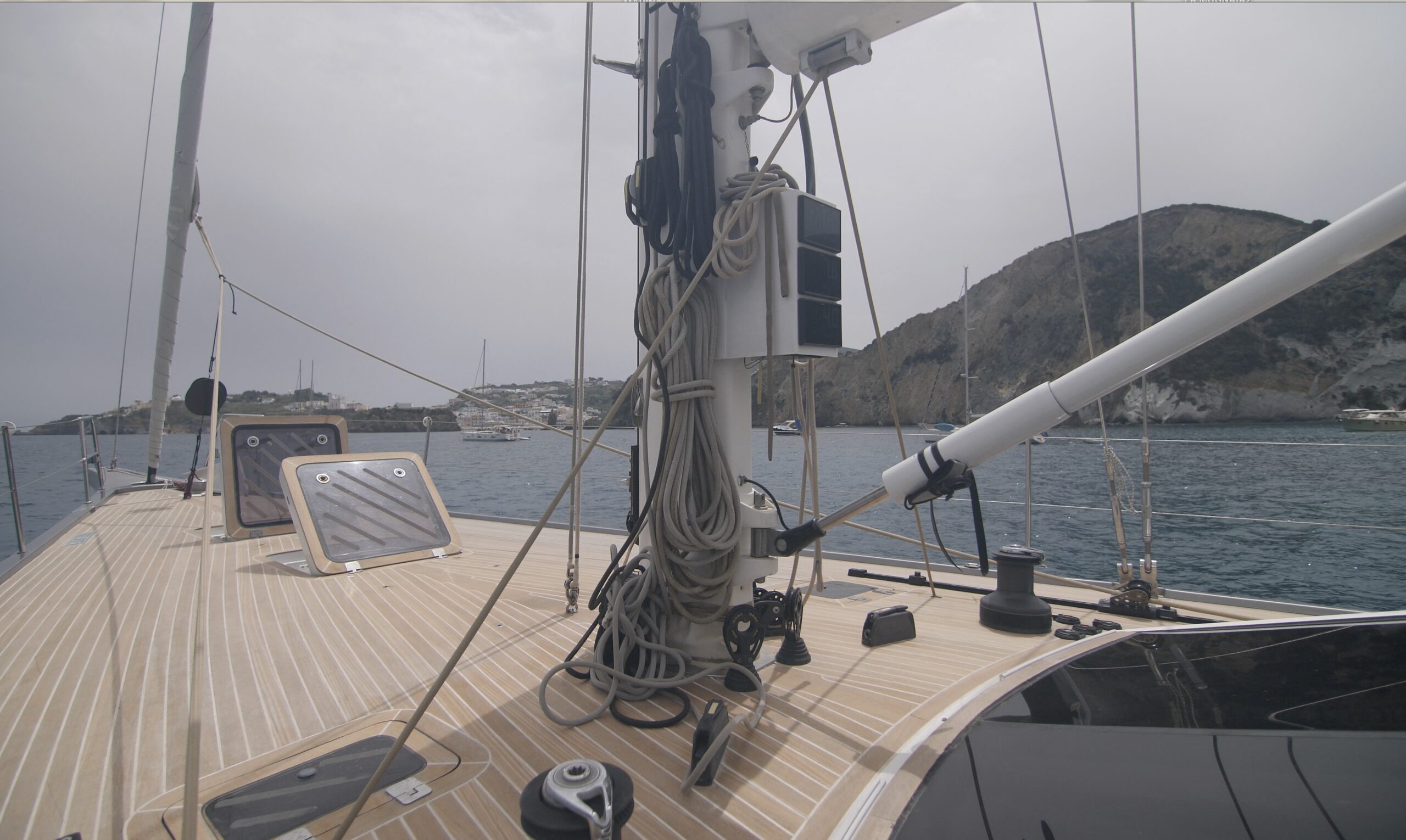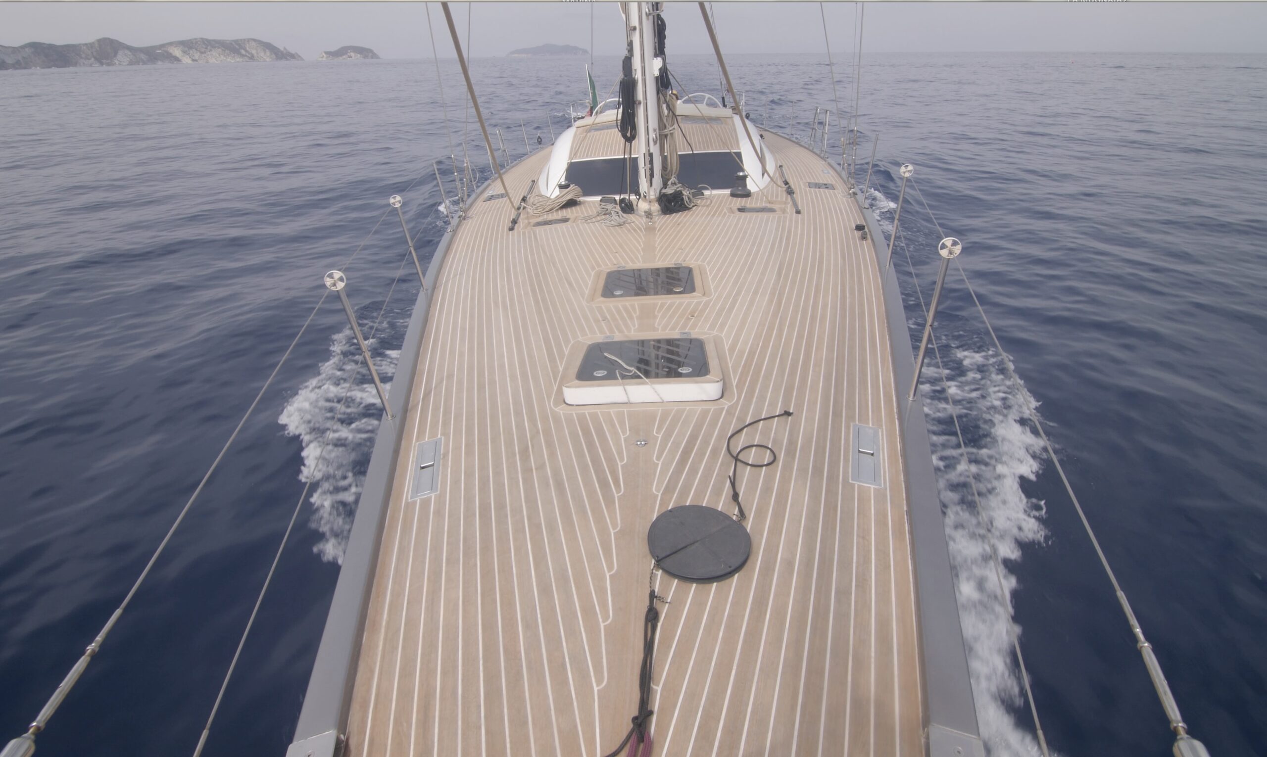 All’esterno, ogni dettaglio è stato rivisto per garantire la massima efficienza e bellezza: il ponte in teak con comento bianco, le nuove attrezzature di coperta custom, il furling boom in carbonio, il bompresso su misura firmato Vallicelli e l’elettronica di bordo (Garmin) di ultima generazione testimoniano una visione coerente e votata all’eccellenza.