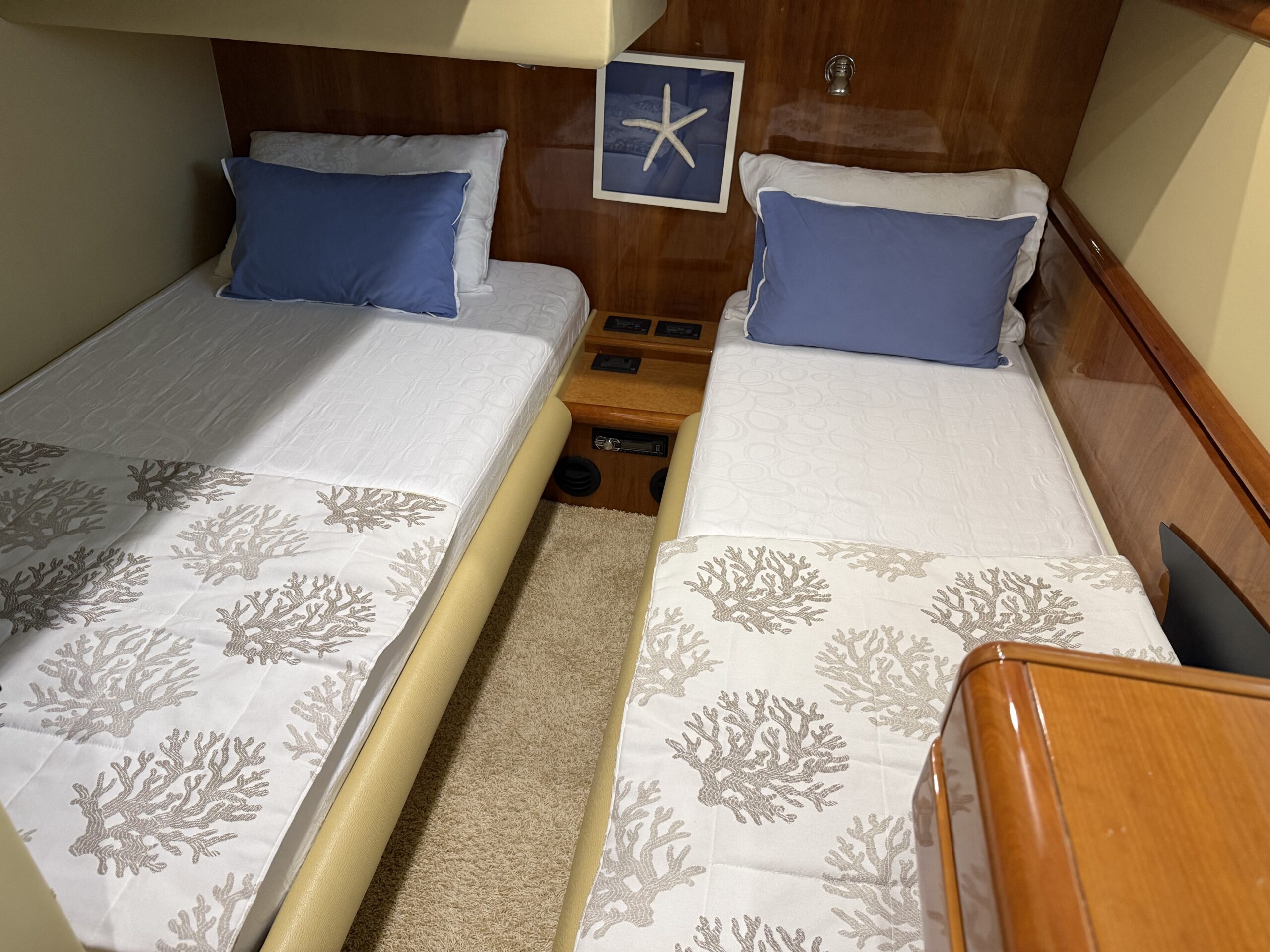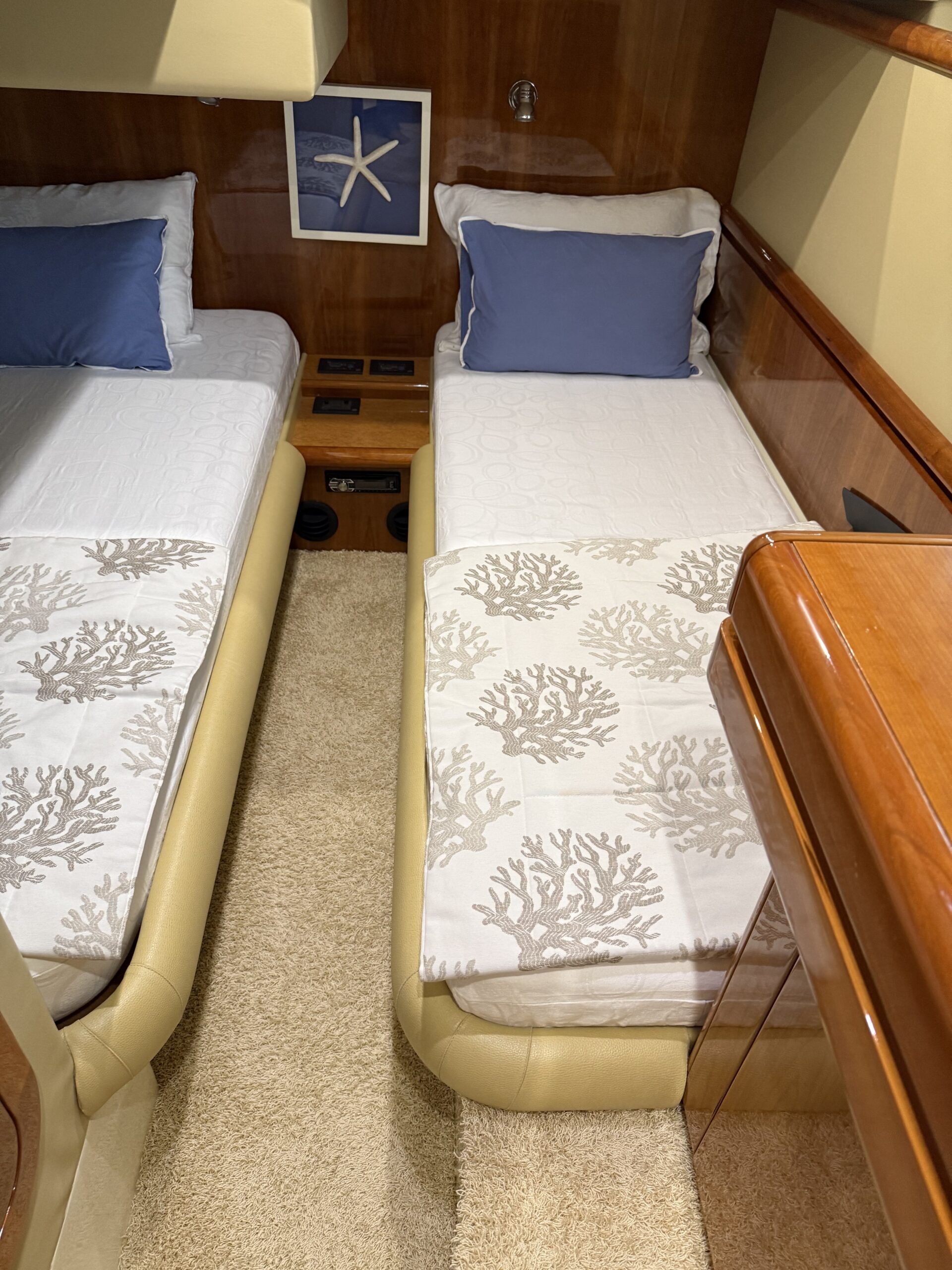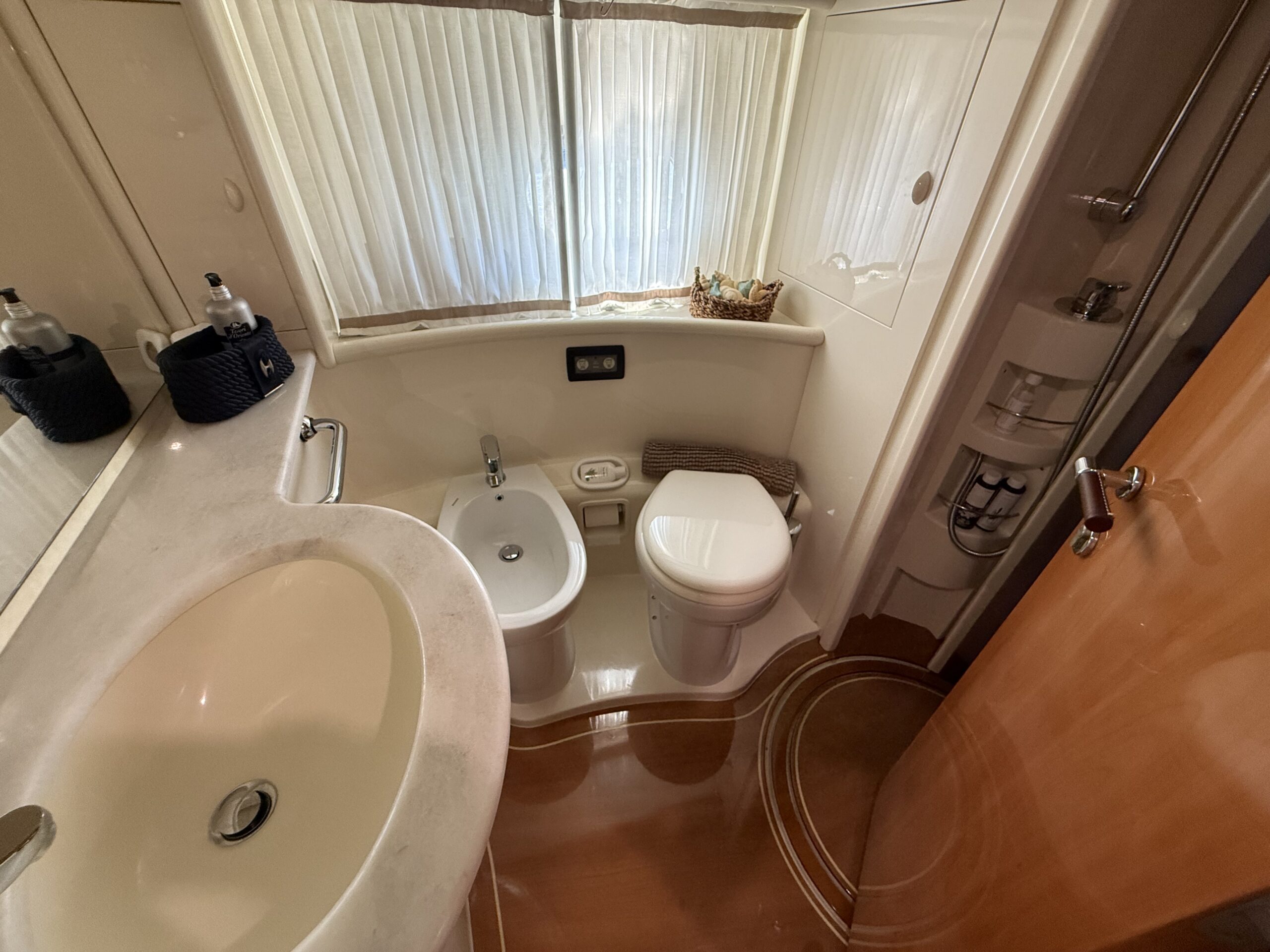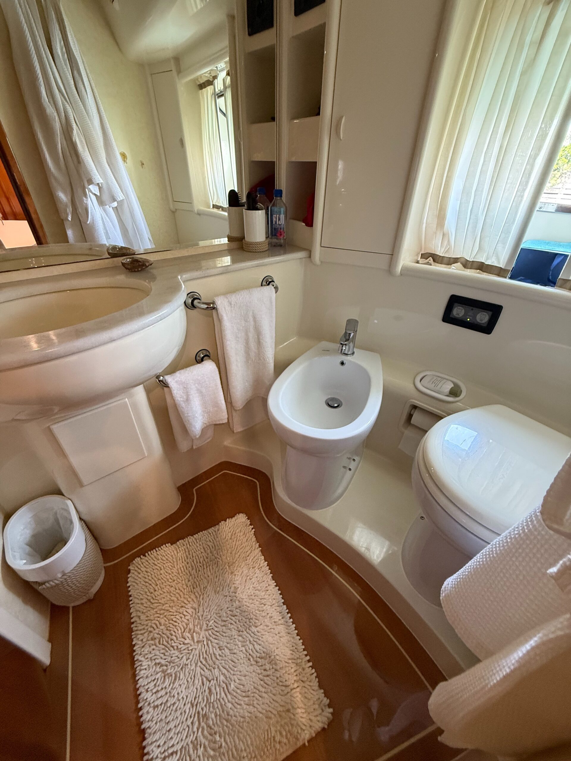 Il lower deck ospita tre comode cabine, tutte dotate di bagno en-suite, offrendo la massima privacy e comfort. A completare la configurazione, due cabine equipaggio con accesso e servizi separati, per garantire discrezione e funzionalità a bordo. Ogni ambiente è climatizzato e curato nei dettagli, con materiali pregiati e scelte di décor di grande gusto.