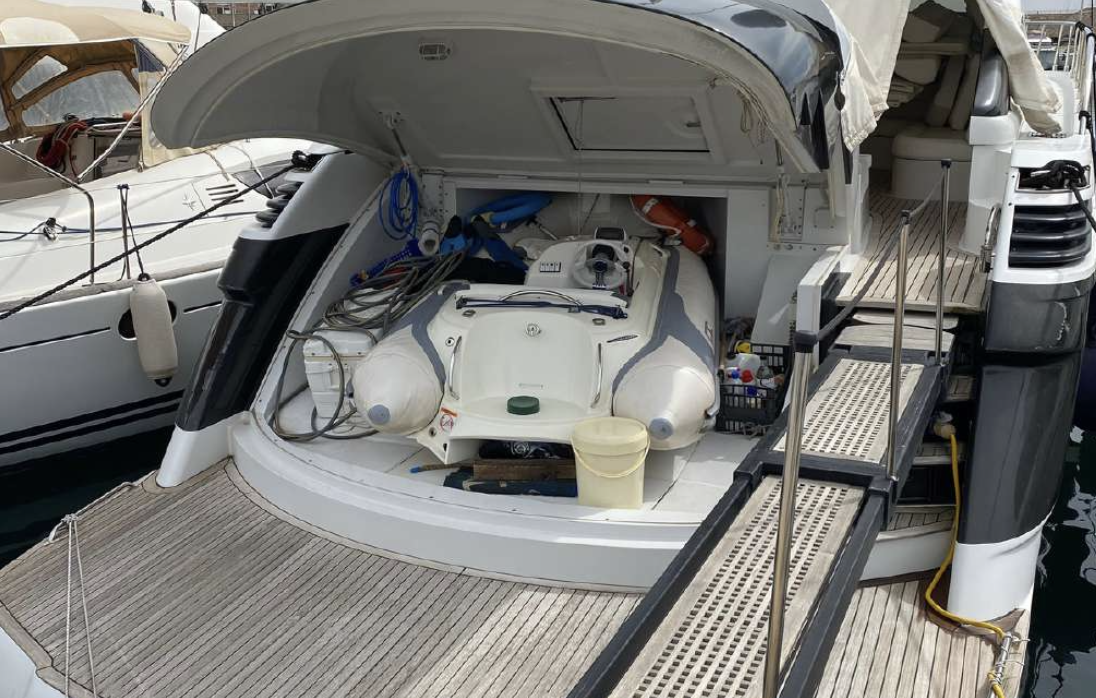Completano l’allestimento una cabina equipaggio con ingresso indipendente e bagno privato, ideale per garantire comfort a tutto l’equipaggio.