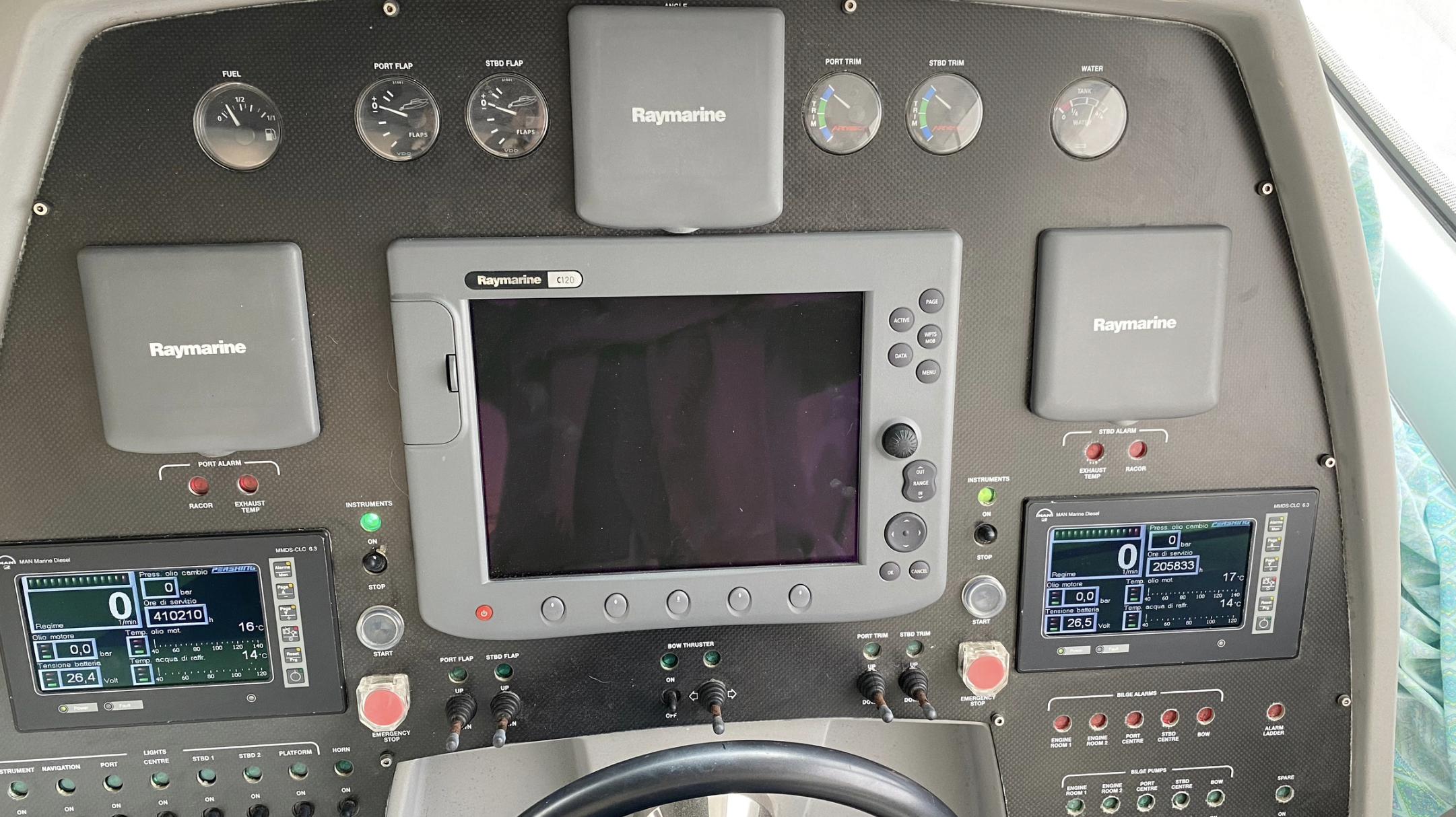 L'imbarcazione è dotata di due potenti motori MAN da 1360 cavalli ciascuno, che le permettono di raggiungere una velocità massima di 48 nodi e una crociera confortevole intorno ai 40 nodi, offrendo così performance emozionanti senza rinunciare al comfort.
