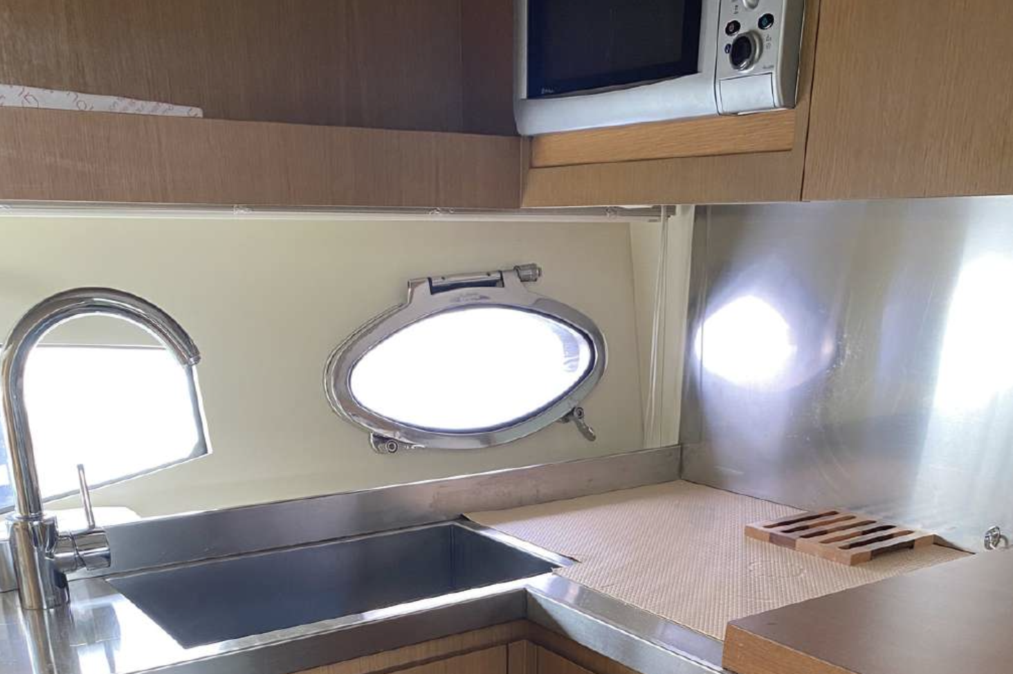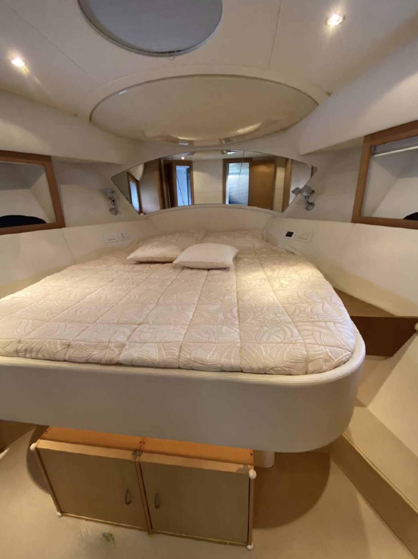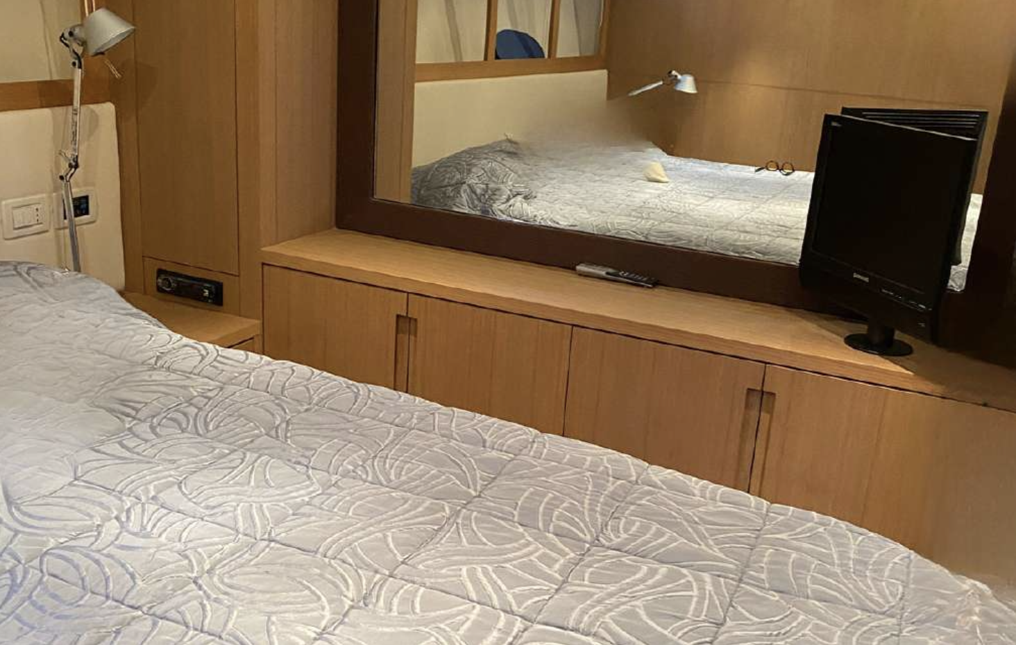 La zona ospiti dispone di 3 cabine e 3 bagni. Una cabina armatoriale centrale a tutto baglio, con bagno privato e ampi spazi per riporre effetti personali, pensata per garantire il massimo comfort e privacy. A prua, la cabina VIP matrimoniale dispone anch’essa di bagno privato, mentre la cabina ospiti offre letti in piano e un bagno condiviso, utilizzabile anche come bagno diurno.