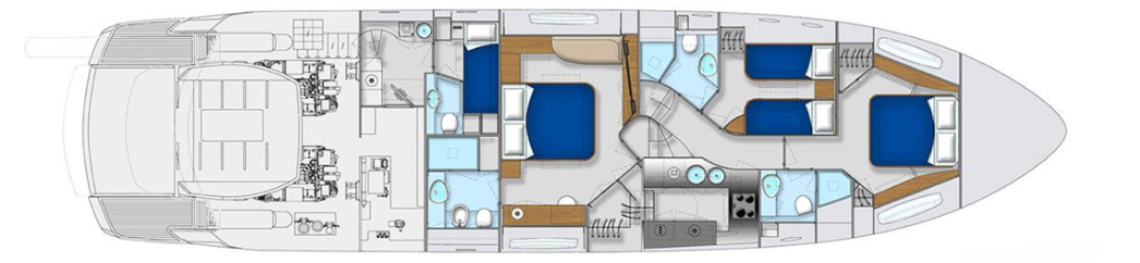 A bordo, la tecnologia più avanzata si fonde con un’eleganza senza tempo. Il sistema di stabilizzazione Seakeeper neutralizza il rollio e garantisce una navigazione stabile, fluida e silenziosa in ogni condizione.