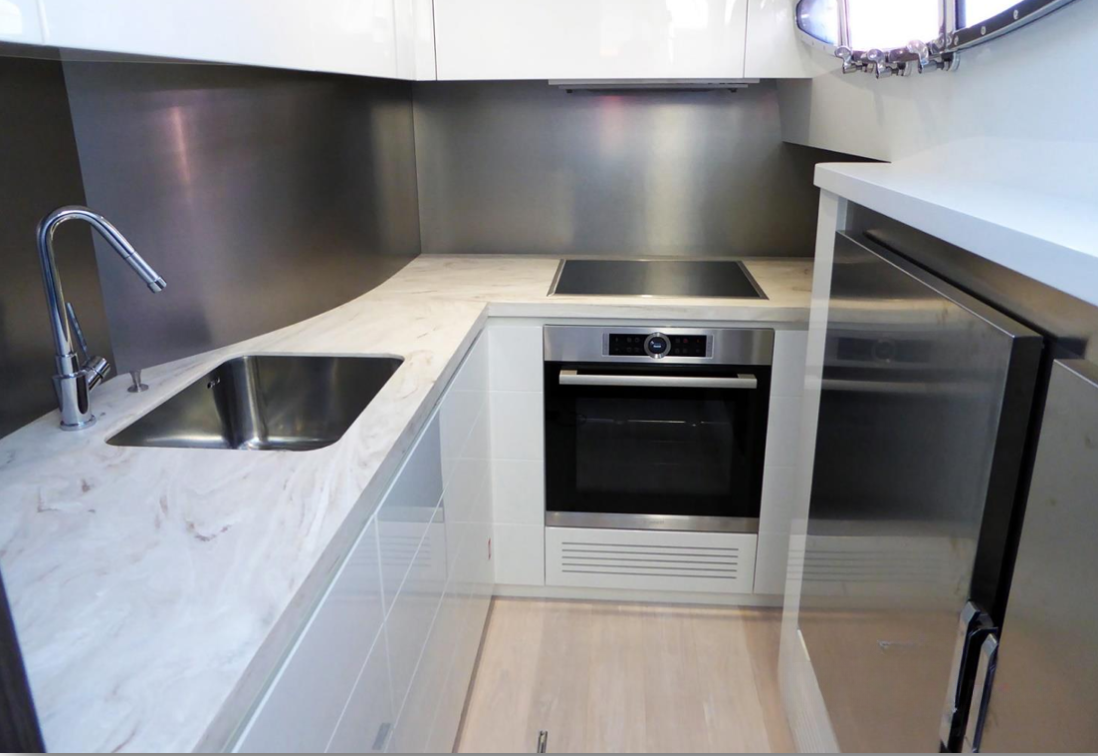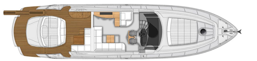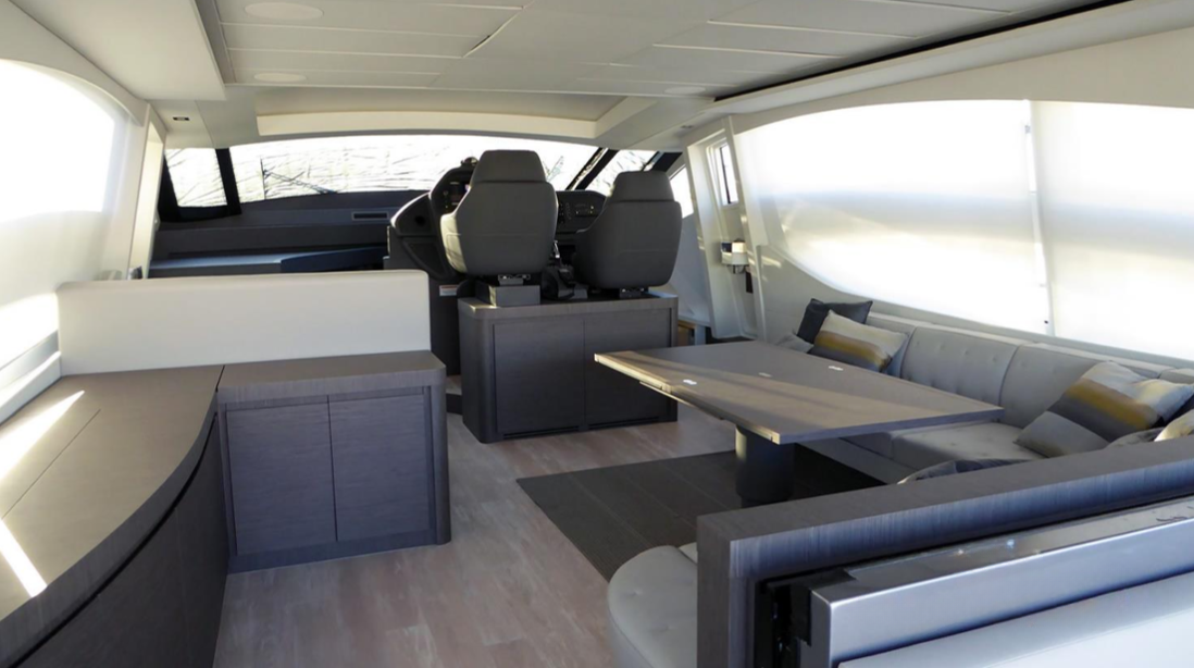 Il sundeck, accessibile tramite un tambuccio automatizzato e una raffinata scala in carbonio a scomparsa, è un rifugio sospeso tra vento e orizzonte, il luogo ideale per godere del panorama in totale relax. La porta in vetro a scomparsa che collega pozzetto e salone consente di trasformare gli spazi con un semplice gesto: da un open space luminoso e continuo a due ambienti distinti, sempre nel segno della fluidità e della massima vivibilità.